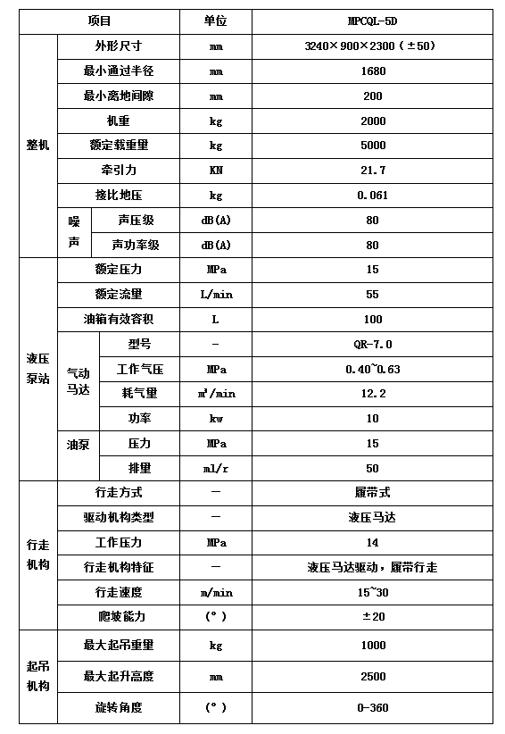 气动履带式平板车功能特点: