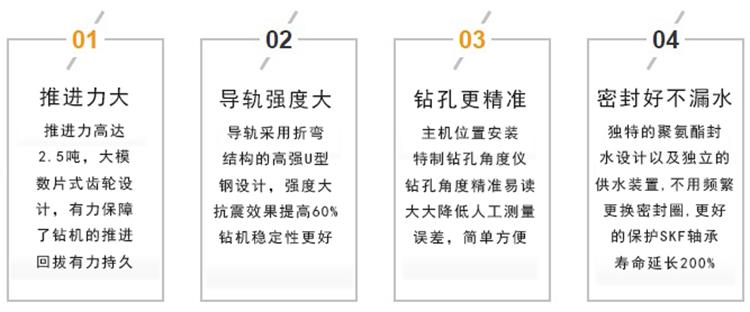 2. 独立的气动马达按比例自动进给、钻孔速度快。